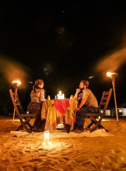 Look no further than this romantic candle dinner at the base of the dunes. The dates will be sure to love the romance of this so special night. Romantic candle dinner top of the dunes is breathtaking.